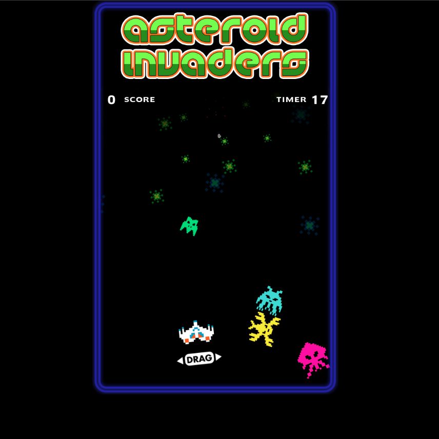 This skill game presents a player draggable icon to catch and avoid targets. Target icons drop from the top center while the player icon moves horizontally at the bottom. Target icons explode when hitting the player icon, scoring 1 point. The game ends when the 30 second timer expires or the player reaches a score of 10.